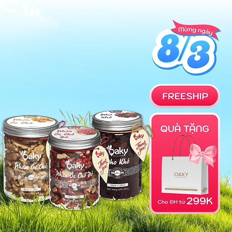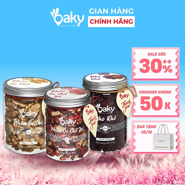 Quà Tặng Oaky - Combo Hạt Dinh Dưỡng Cao Cấp Nhân Óc Chó Vàng, Nhân Óc Chó Đỏ, Nho Khô - Tặng Túi Giấy Sang Trọng