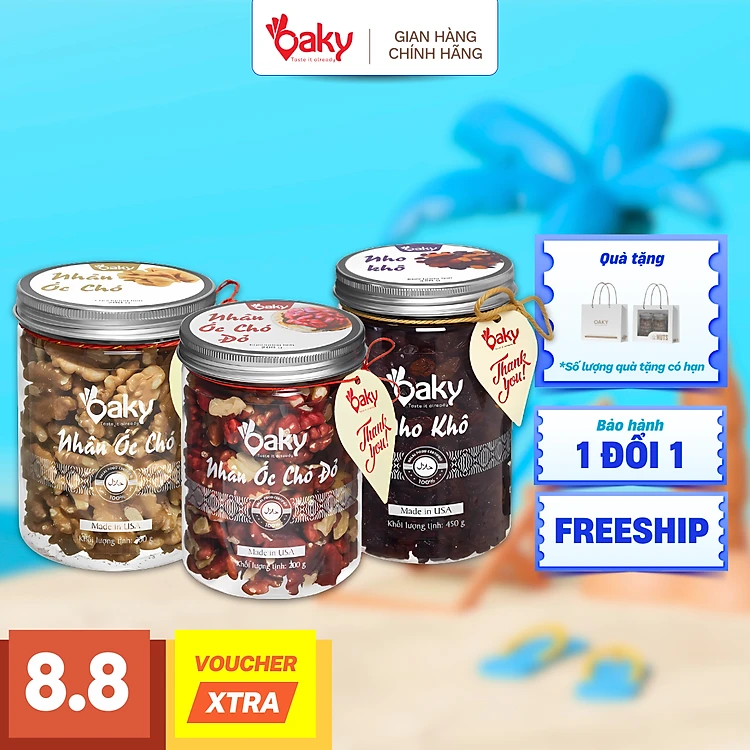 Quà Tặng Oaky - Combo Hạt Dinh Dưỡng Cao Cấp Nhân Óc Chó Vàng, Nhân Óc Chó Đỏ, Nho Khô - Tặng Túi Giấy Sang Trọng