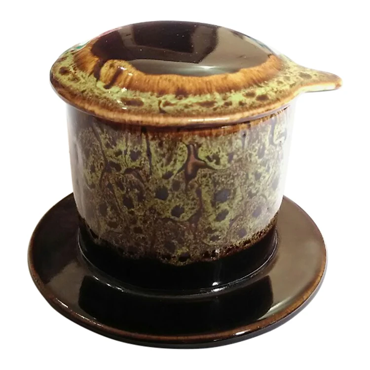 Quà Tặng Phin Cà Phê - Gốm Sứ Bát Tràng - P07V - Màu Vàng Gấm Gốm sứ nung ở nhiệt độ > 1300 độ C