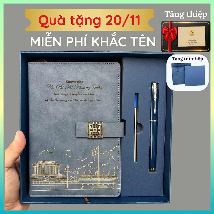 Quà tặng - Sổ tay bút ký MIỄN PHÍ KHẮC TÊN ghi chép da PU+ túi hộp sang trọng 200 trang - B202