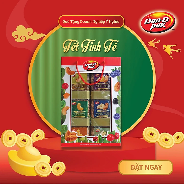 [Quà Tết] Hộp 6 hũ Điều có muối, không muối, vỏ lụa, hạt dẻ cười, thập cẩm fancy có muối, không muối 250g Dan-D Pak