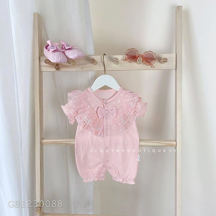 Quần áo sơ sinh QUỲNH BABY Body cộc nơ cổ ren(4-12kg)