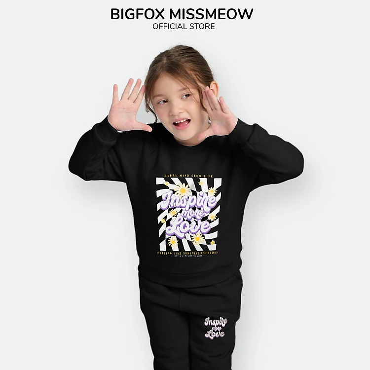 Quần áo thu đông cho bé gái Bigfox Miss Meow size đại, bộ nỉ bé gái in hoa cúc Inspire size trẻ em 12,13,14,15 tuổi