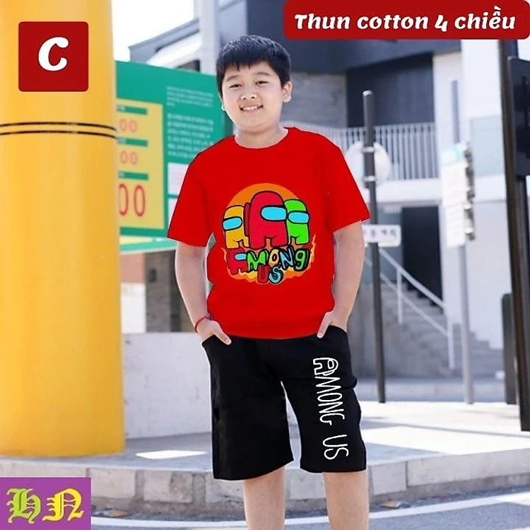 Quần áo trẻ em béo phì bé trai Among US từ 22-58kg - Đồ bộ bé trai chất thun cotton 4 chiều-Hương Nhiên