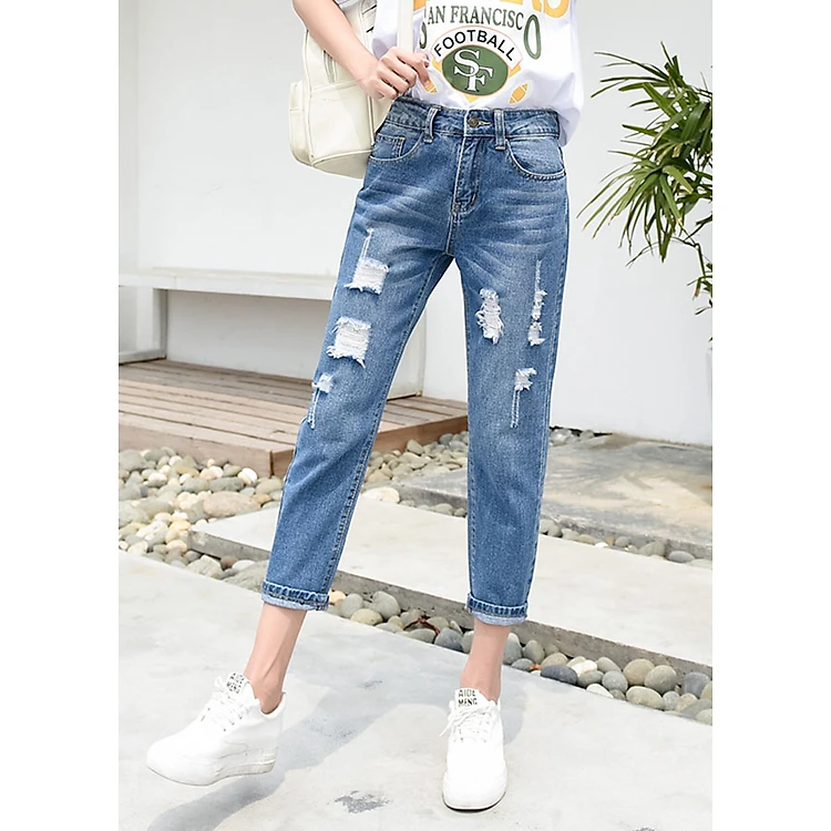 Quần Baggy Jean Nữ Rách Xước Đẹp 498