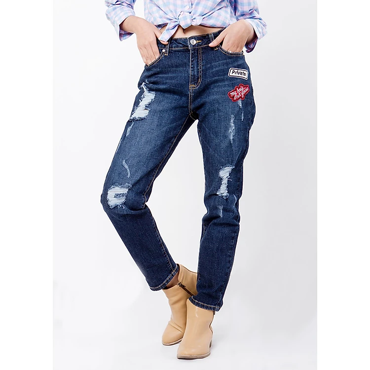 Quần Baggy Jeans Rách Nữ - Xanh Đen Ninomaxx