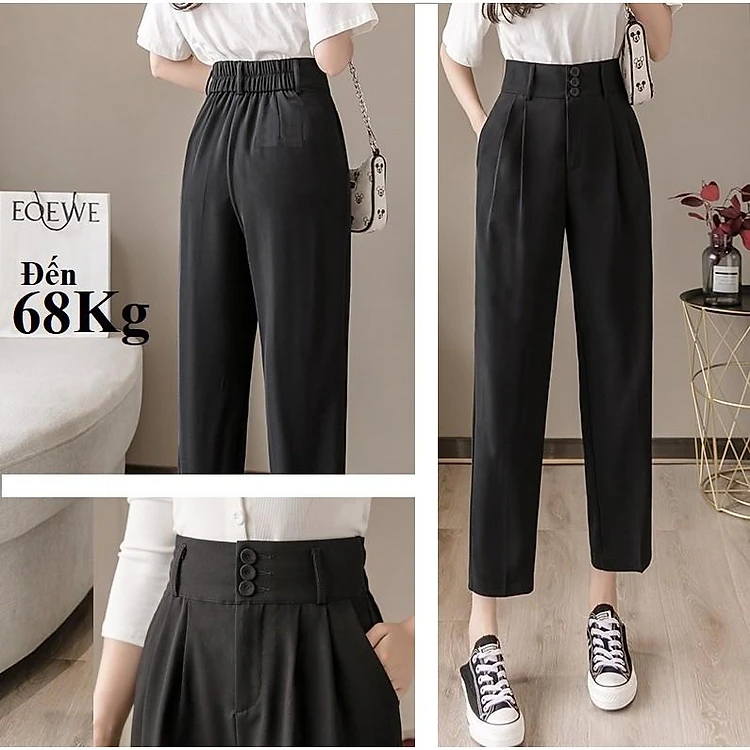 Quần Baggy Nữ Lưng Cao 3 Tầng Khuy 8cm, Cạp Chun sau Lưng Dễ Chịu khi vận động, Vải Tuyết Mưa Đẹp, Có Big Size 68KG