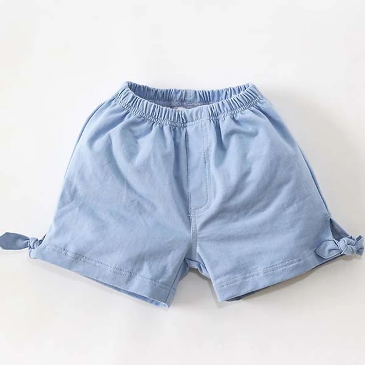 Quần short vảy cá bé gái, không túi, nút xanh giữa lưng với chất liệu thun vảy cá
