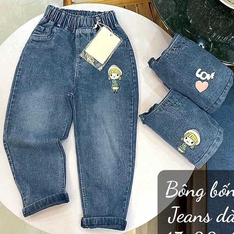 Quần jean bò cho bé gái size nhỡ đi học siêu xinh: