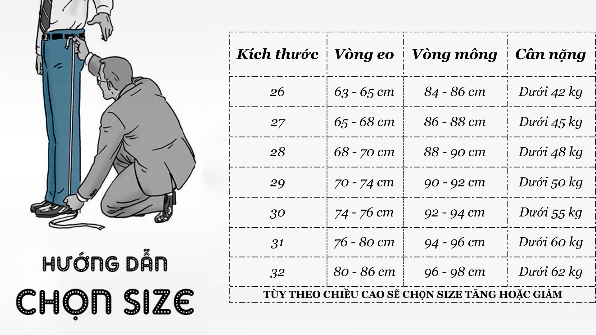 HƯỚNG DẪN CHỌN SIZE