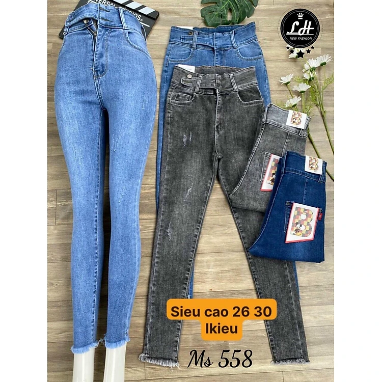 Quần bò nữ - quần jean nữ lưng cao co giãn dáng ôm lưng kiểu phong cách Hàn Quốc MS 558