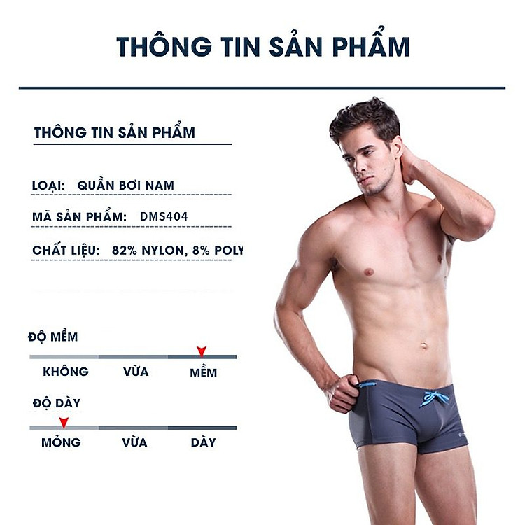 - Việc lựa chọn một chiếc phù hợp với hình thể bạn là điều rất quan trọng ; Quần bơi nam Boxer Desmiit S404 ôm gọn phần đùi thật chắc chắn nhưng rất thoải mái;