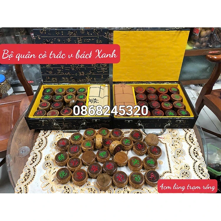 Quân cờ tướng bằng gỗ bách xanh thơm ngọt kt 4×1.6cm +hộp đựng quân
