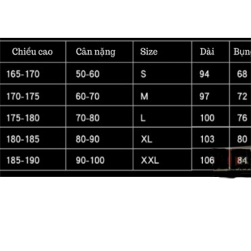 Bảng size