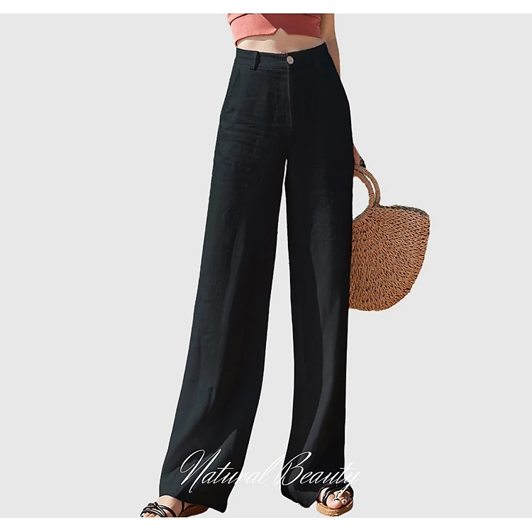 Quần dài nữ suông chất liệu linen mát mẻ , quần có khóa trước và chun sau dễ mặc và dễ phối đồ QD07