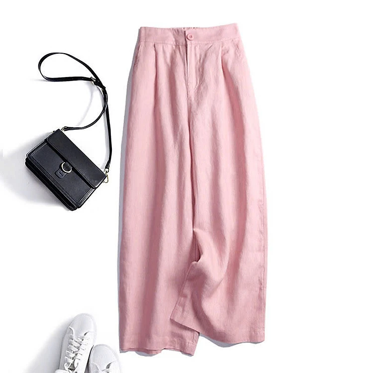 Quần dài suông linen thô cao cấp đũng ngắn lưng thun