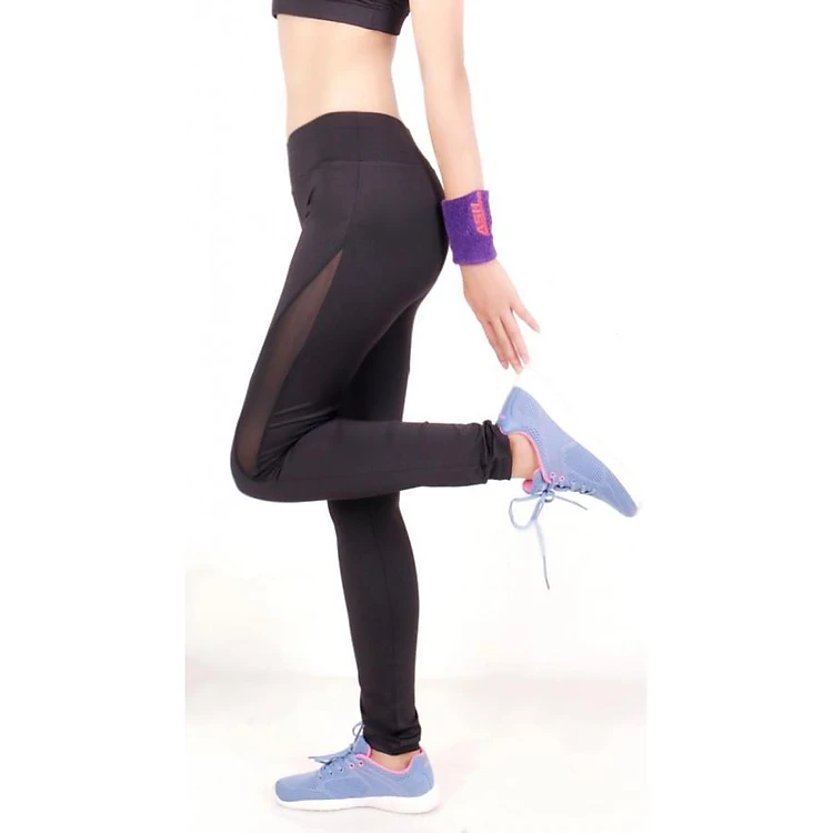 • Quần legging dài thể thao nữ phối lưới cao cấp mà đen DD3