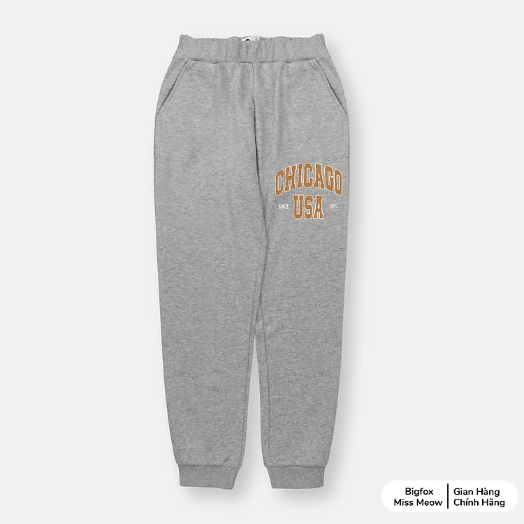 Quần dài thu đông bé trai Bigfox Miss Meow size đại, quần nỉ lót bông bé trai in Chicago USA size trẻ em 23-52 kg