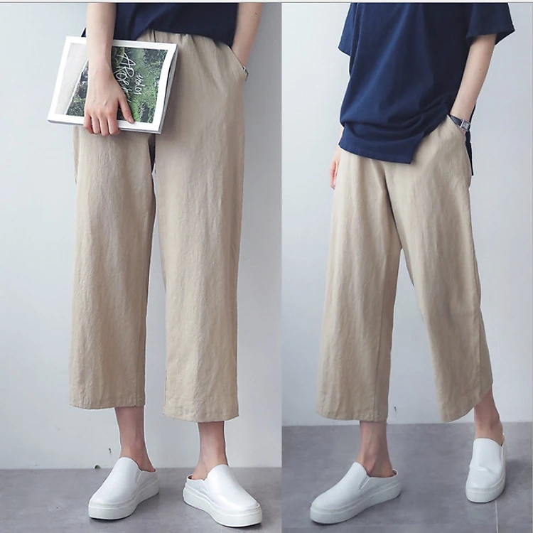 Quần đũi ống rộng cúc khoá chun lưng dáng lỡ kiểu Nhật -Quần ống suông khóa trước dáng lửng siêu HOT
