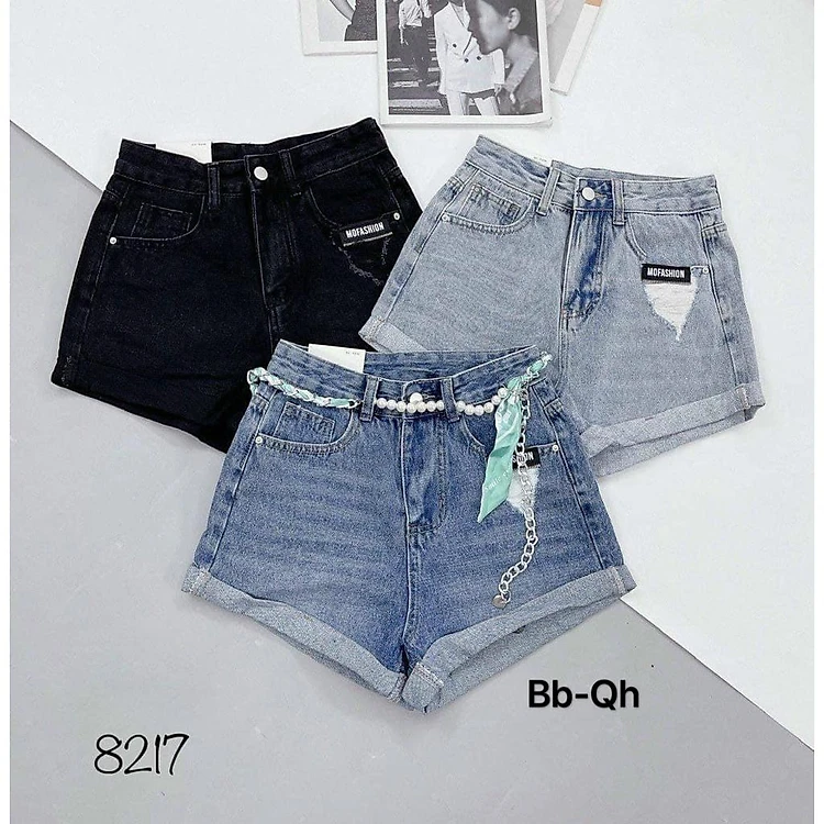 Quần đùi lưng cao cho bé gái phối đồ đi chơi sành điệu size 10-40kg chất jeans co giãn mềm mại