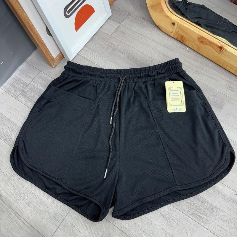 Quần đùi lưng thun bigsize nữ. Chất liệu thun gân tăm xịn, thiết kế bảng lưng chun sau nên eo có độ co giản thoải mái.