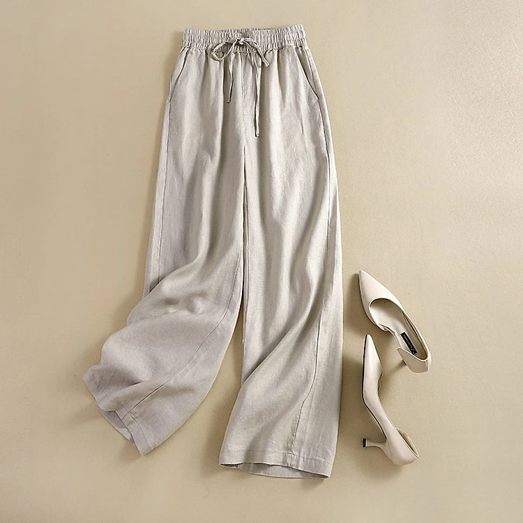 Quần suông nữ trơn cạp chun kèm dây rút, có Bigsize, chất linen Đũi ViệtQd09