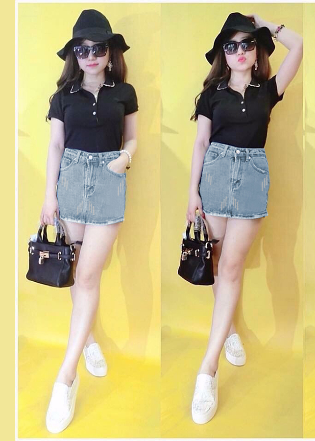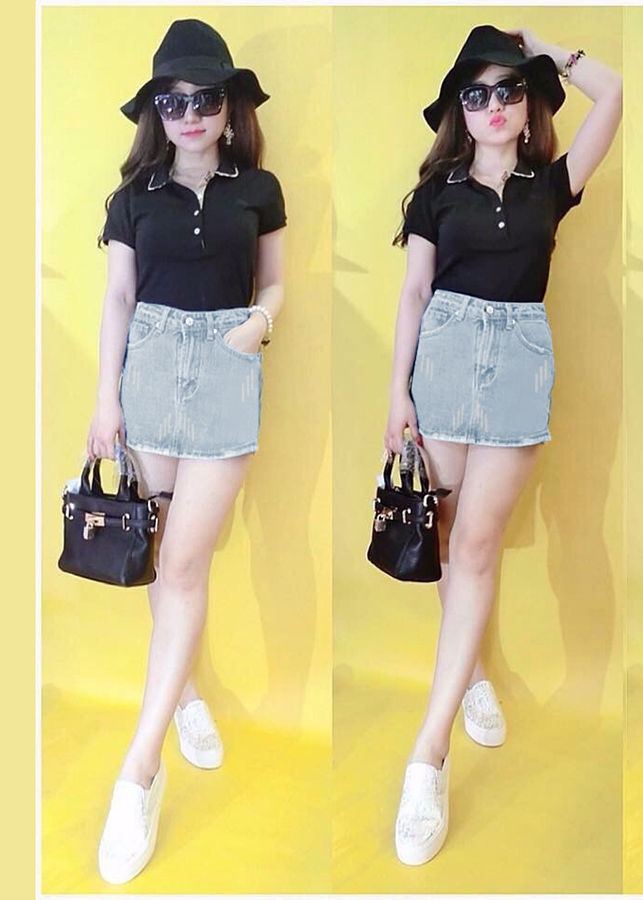 Quần Giả Váy Jean Nữ Kèm Dây Thắt Lưng