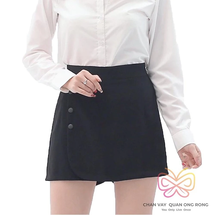 Quần giả váy nữ cách điệu 3 cúc bấm vải tuyết mưa đường may chắc chắn tỷ mi