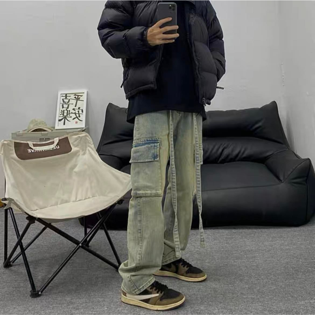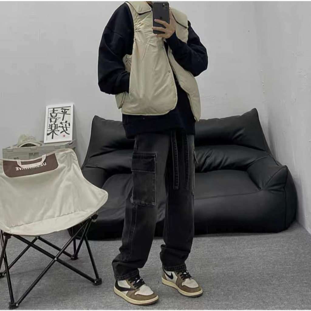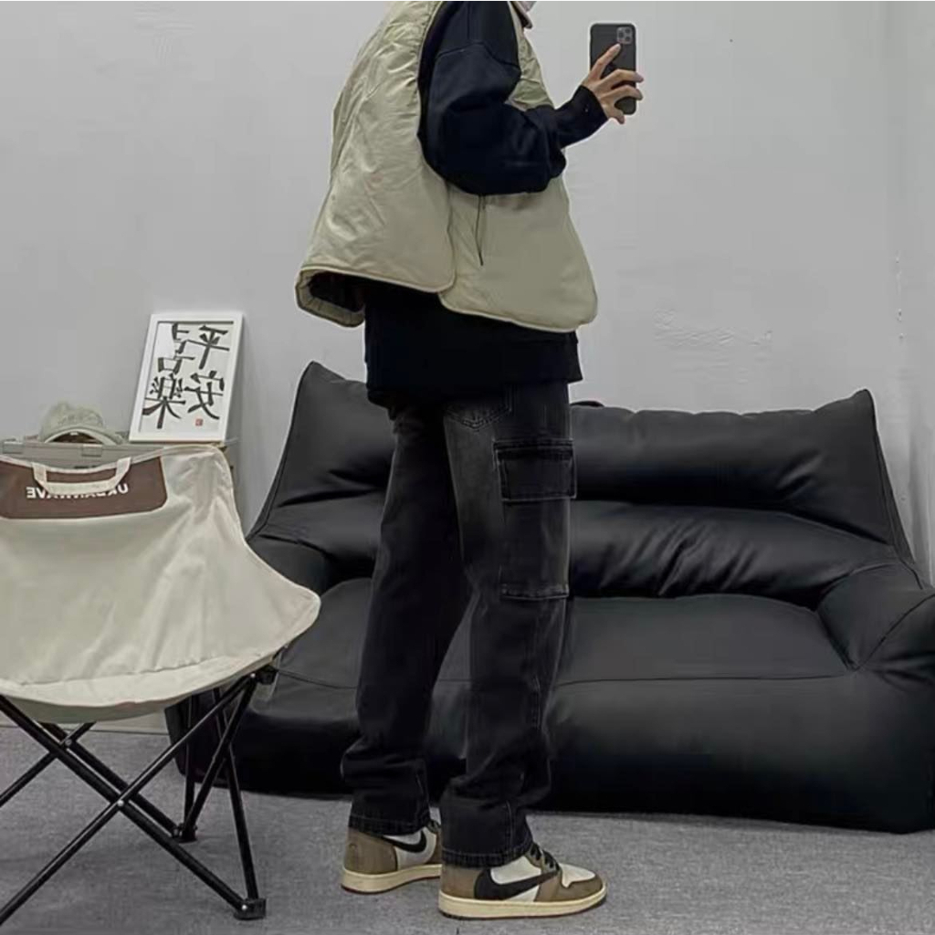 Quần jean cargo pant ống rộng unisex , cargo pants cạp thấp nam nữ , quần túi hộp phong cách y2k