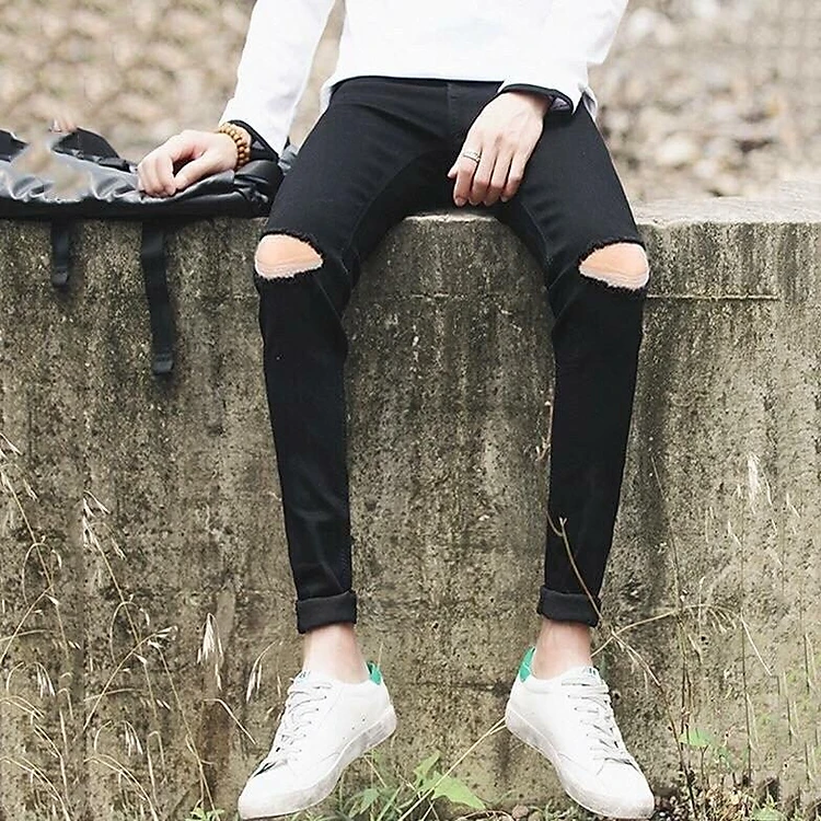 Quần Jean Nam Đen Rách Gối - Ôm Body Cực Hot