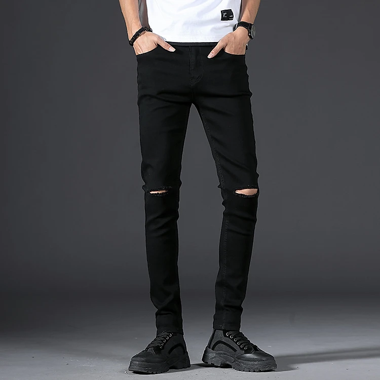 Quần Jean Nam Đen Trơn Rách Gấu SZone Chất - Vải Cực Bền Không Phai Màu Phong Cách Nổi Bật