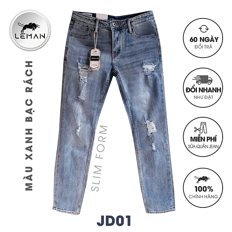 Quần Jean nam Leman xanh rách JD01 - Slim Form