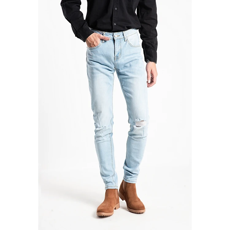 Quần jean nam Routine rách gối xanh nhạt dáng skinni Size 28 - 36