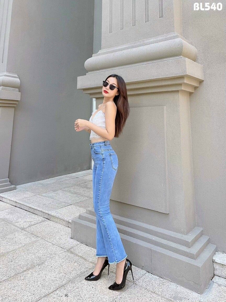 QUẦN JEAN NỮ ỐNG LOE LƯNG CAO 9 TẤC