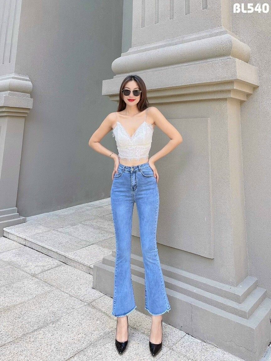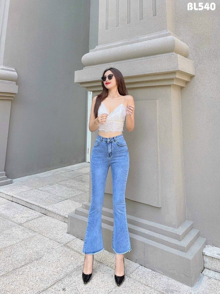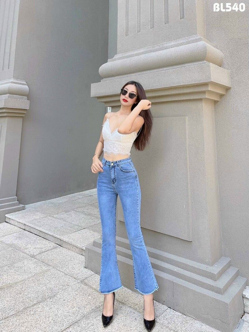 Quần jean nữ ống loe 9 tấc lưng cao lai tưa đẹp Đôi Chân Nhỏ