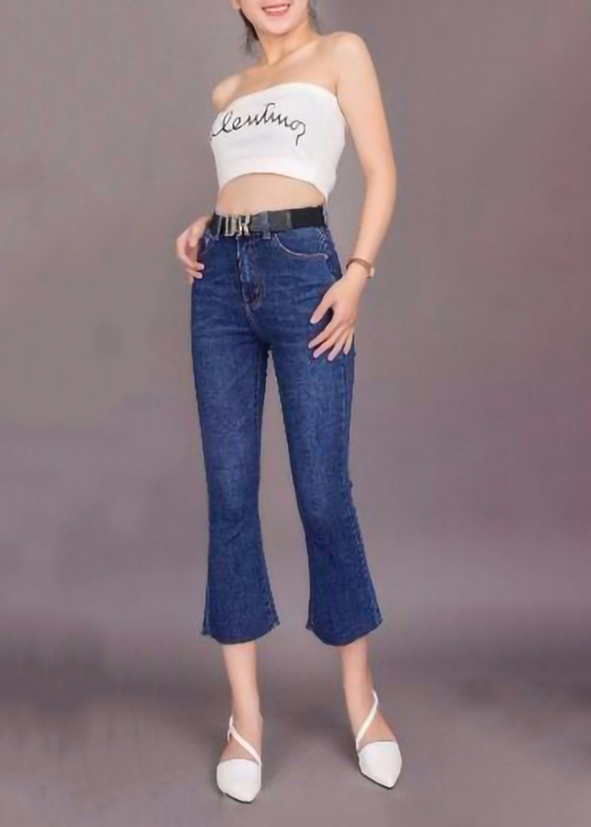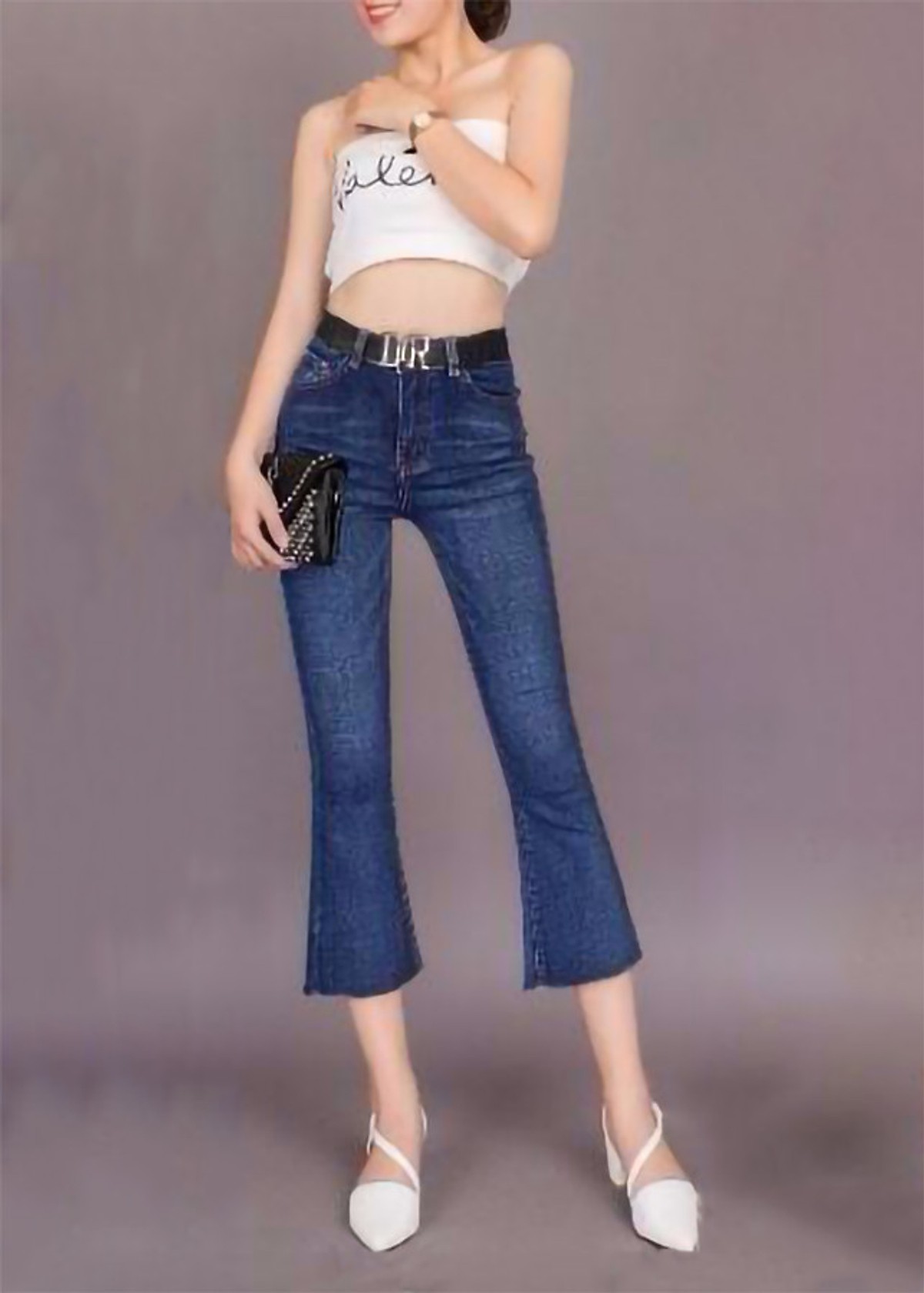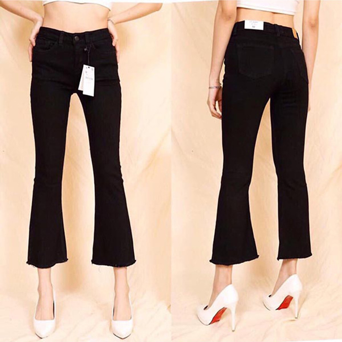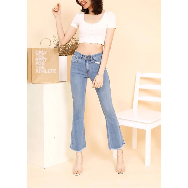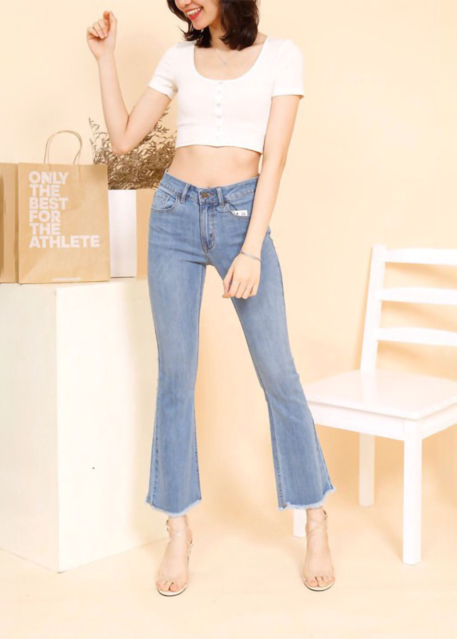 - Cạp cao, lai tưa, ống loe dễ phối đồ.