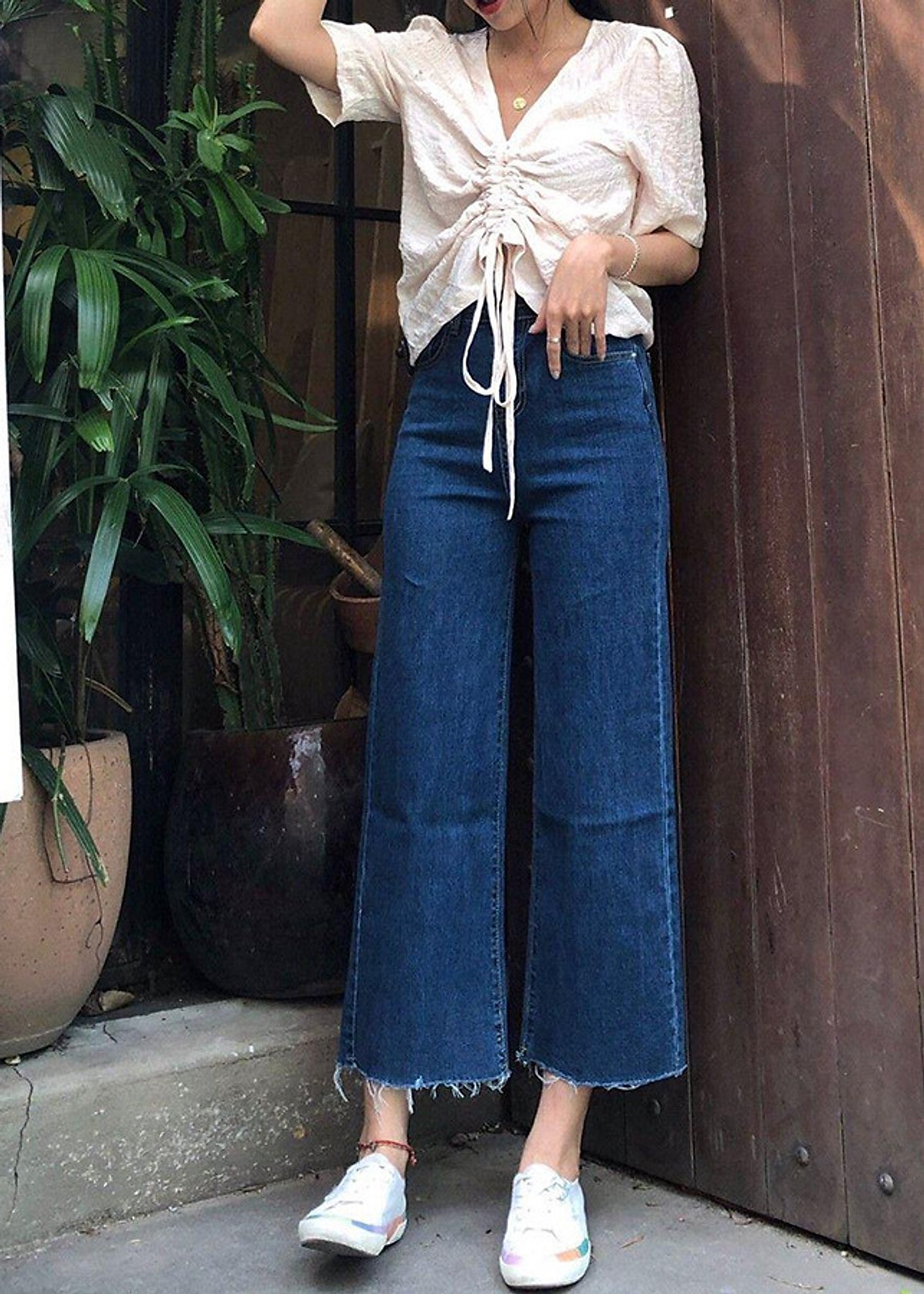 Kiểu dáng: Ống rộng, lai tưa, cạp trung