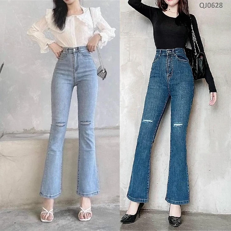 Quần Jean Ống Loe Rách Gối Lưng Cao QJ0628
