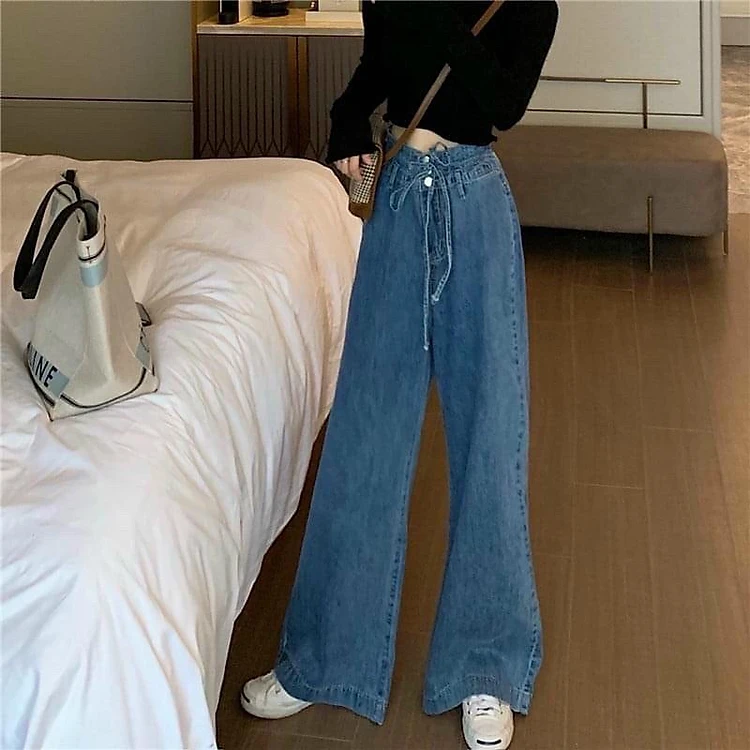 QUẦN JEAN ỐNG RỘNG THẮT NƠ