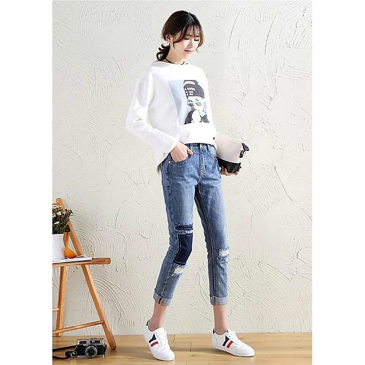 Quần jeans nữ rách chắp vá Mã: QD1915