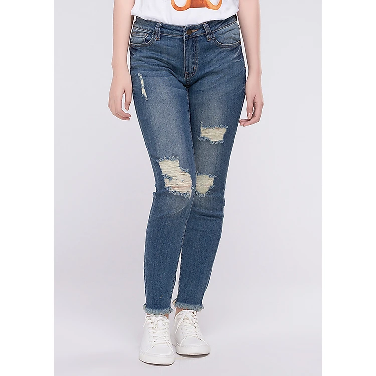 Quần Jeans Nữ Skinny Lai Tua A91 JEANS WSKBS503ME - Xanh