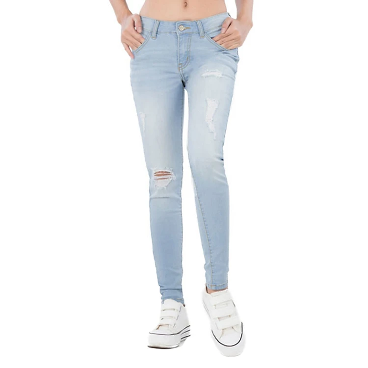 Quần Jeans Skinny Nữ ALE JEANS 60919SKA - Xanh Nhạt được may từ chất liệu cotton/spandex, mềm mịn, độ bền cao cùng khả năng co giãn tốt. Form quần ôm skinny giúp tôn dáng, giúp bạn khoe vóc dáng quyến rũ. Quần may 5 túi cổ điển với 3 túi trước và 2 túi sau, kết hợp cùng thiết kế xẻ rách hai bên đầu gối, mang đến sự trẻ trung và cá tính cho bạn gái.