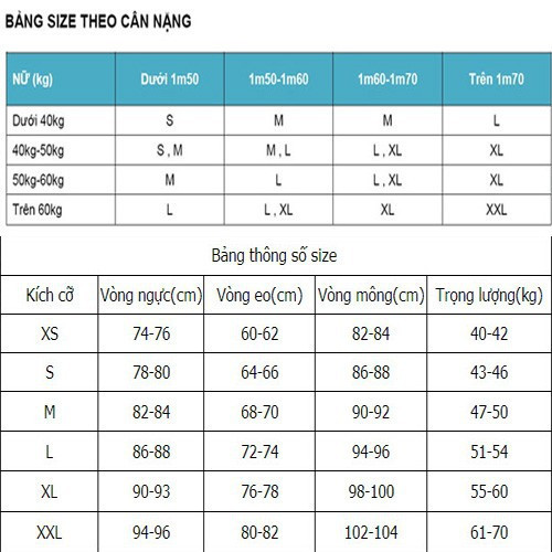 Thông số sản phẩm: Vòng Eo - Vòng Mông - Chiều Dài