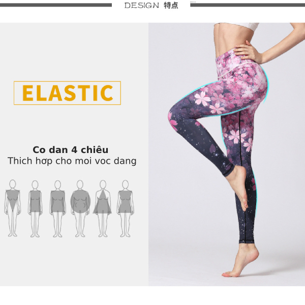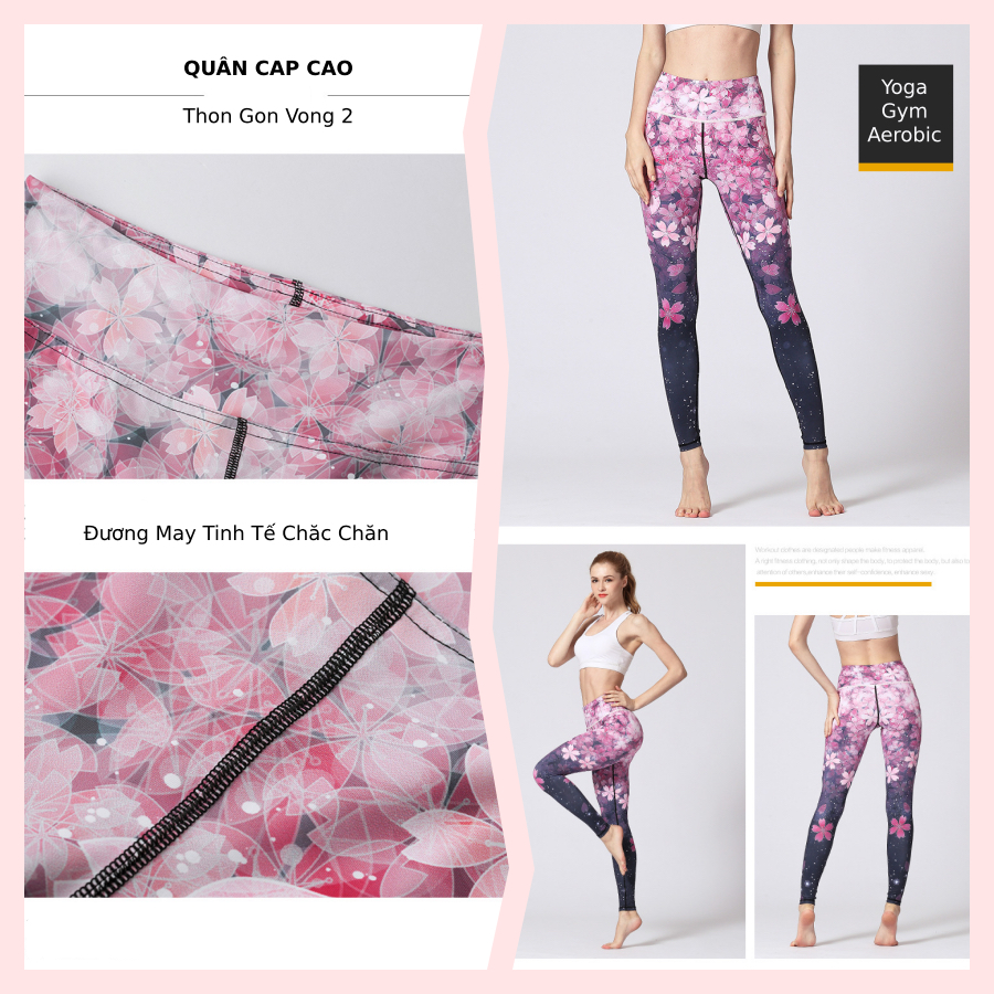 Quần Legging Dài Nữ Tập Yoga, Gym, Thể Thao Hoạ Tiết 3D Sắc Nét, Chất Đẹp, Cạp Cao, Tôn Dáng - Mẫu 2019 Hoa Anh Đào