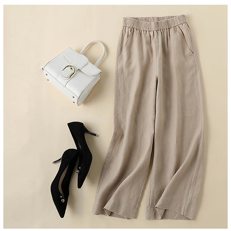 Quần linen suông nữ cạp chun ,quần nữ đi biển mặc thoáng mát ,dễ phối QD08