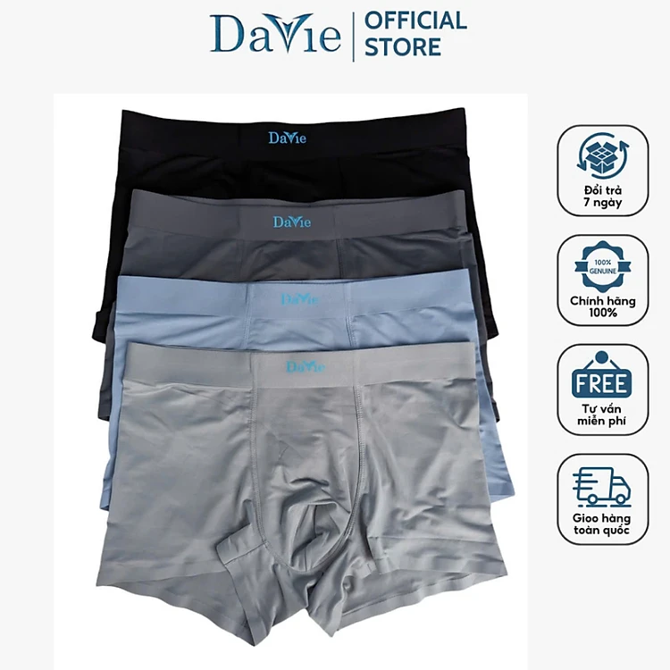 Quần Lót Nam Boxer Thương Hiệu Davie Cao Cấp Mã Dvlx002 Không Đường Viền, Co Giãn Tốt