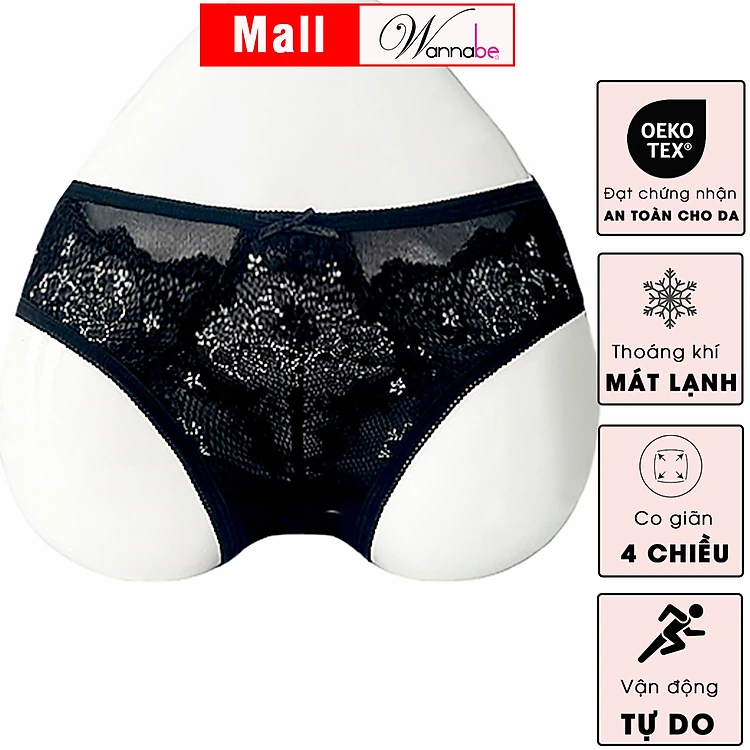 Quần lót nữ cao cấp Wannabe QLR10 chất lưới phối ren hoa xinh xắn ôm 3/4 mông