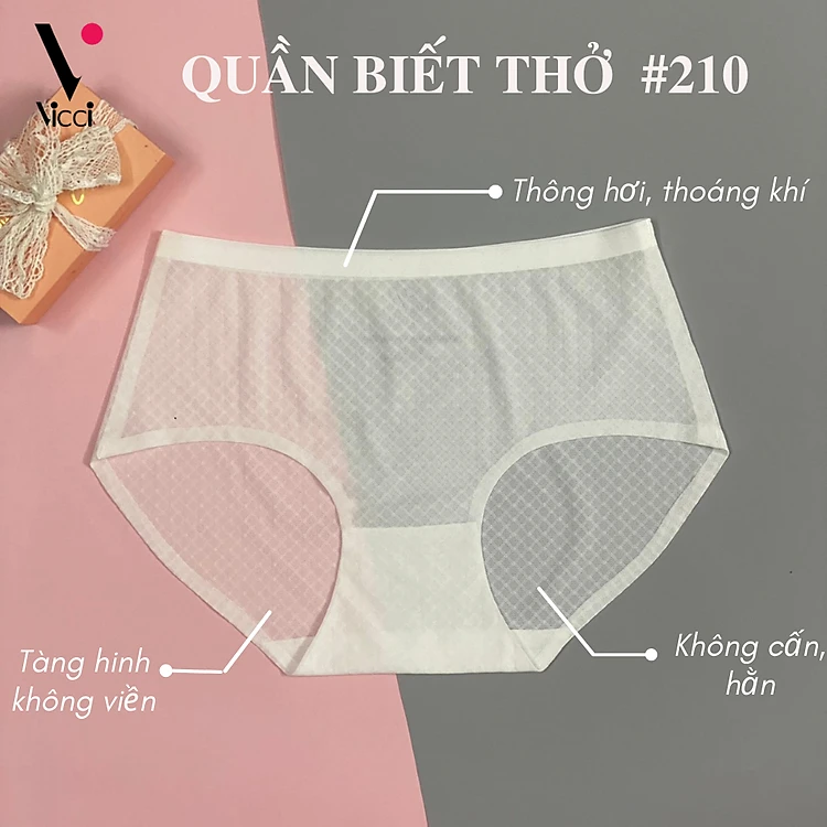 Quần lót nữ cạp cao biết thở Vicci QV.210 công nghệ Microfiber không đường may, siêu mỏng nhẹ, tàng hình không viền, mặc nhẹ như không, thông hơi thoáng khí, kháng khuẩn khử mùi