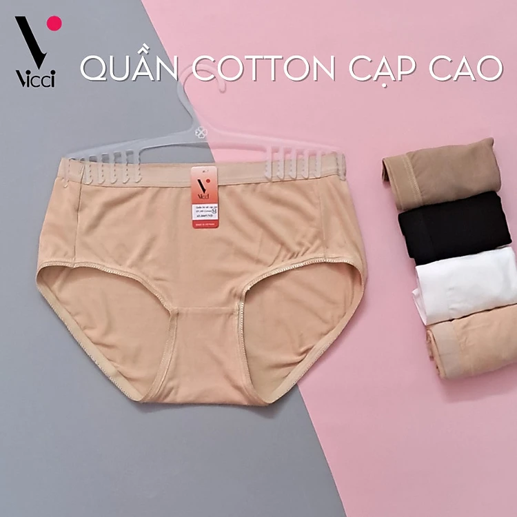 Quần lót nữ cotton trơn cạp cao Vicci 105 ôm gọn vòng 3, mềm mại, thấm hút mồ hôi, kháng khuẩn, khử mùi (có bigsize)