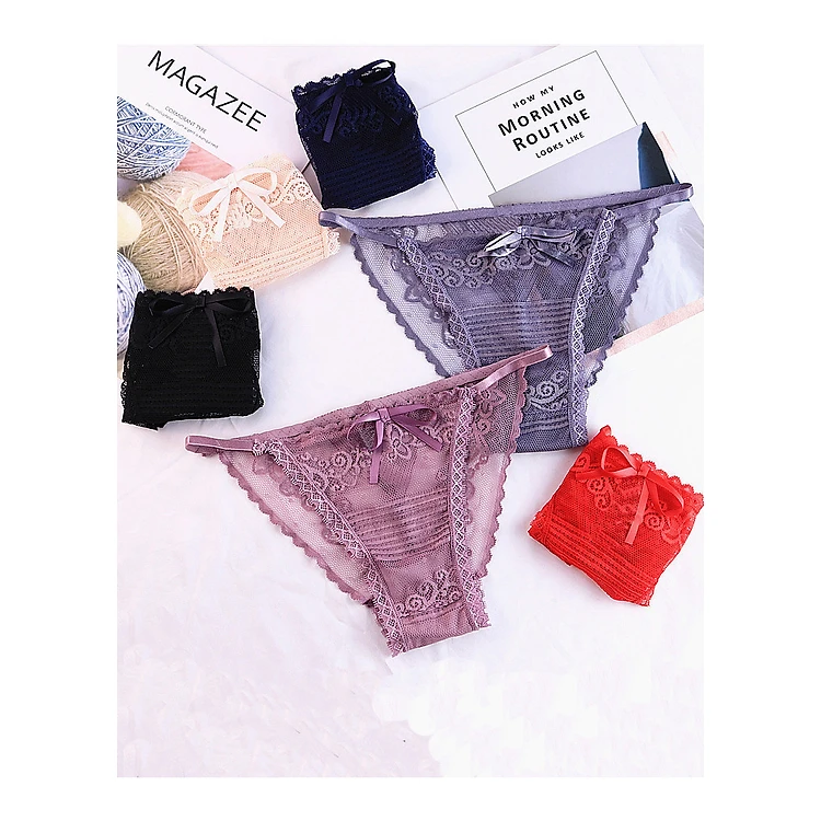 Quần lót nữ ren lưới đính nơ xuyên thấu cạp chun siêu mảnh sexy Q111
